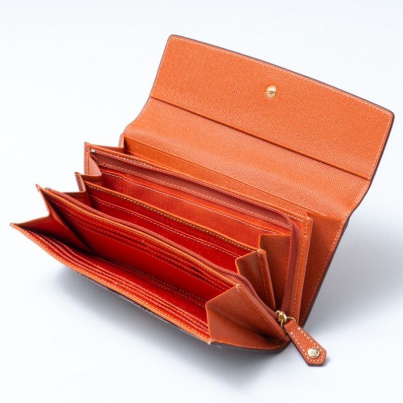 切り目仕様にすることで、薄く、すっきりとした仕上げた長財布です。